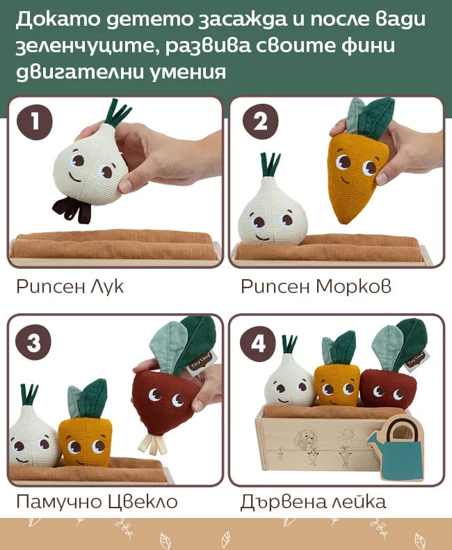 Когнитивно развитие – Позволете на вашето дете да се наслади на изживяването от градинарството, а докато го прави, да научи нещо ново за света. Играта учи малки деца как растат зеленчуците в истинска градина и им помага да развият когнитивно разбиране за света около тях;