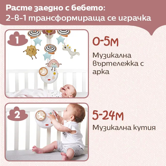 Бебешки и детски магазин "СЛАДУРЧЕТА" и марката "Tiny Love" представят на Вашето внимание играчка със следните характеристики: