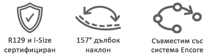 i-Size сертификат за това гарантирано перфектно пасване в i-Size одобрени превозни средства;