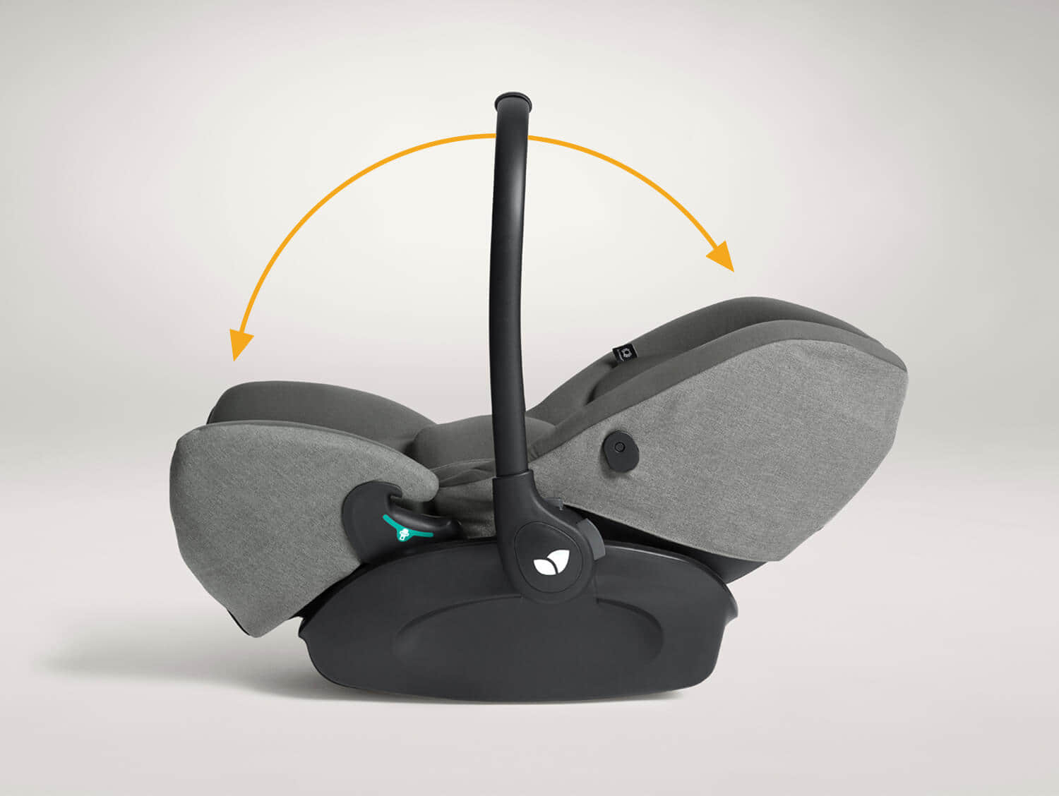 Превръща се в седалка с дълбоко накланяне, която може да се използва в превозното средство или с бебешка количка;