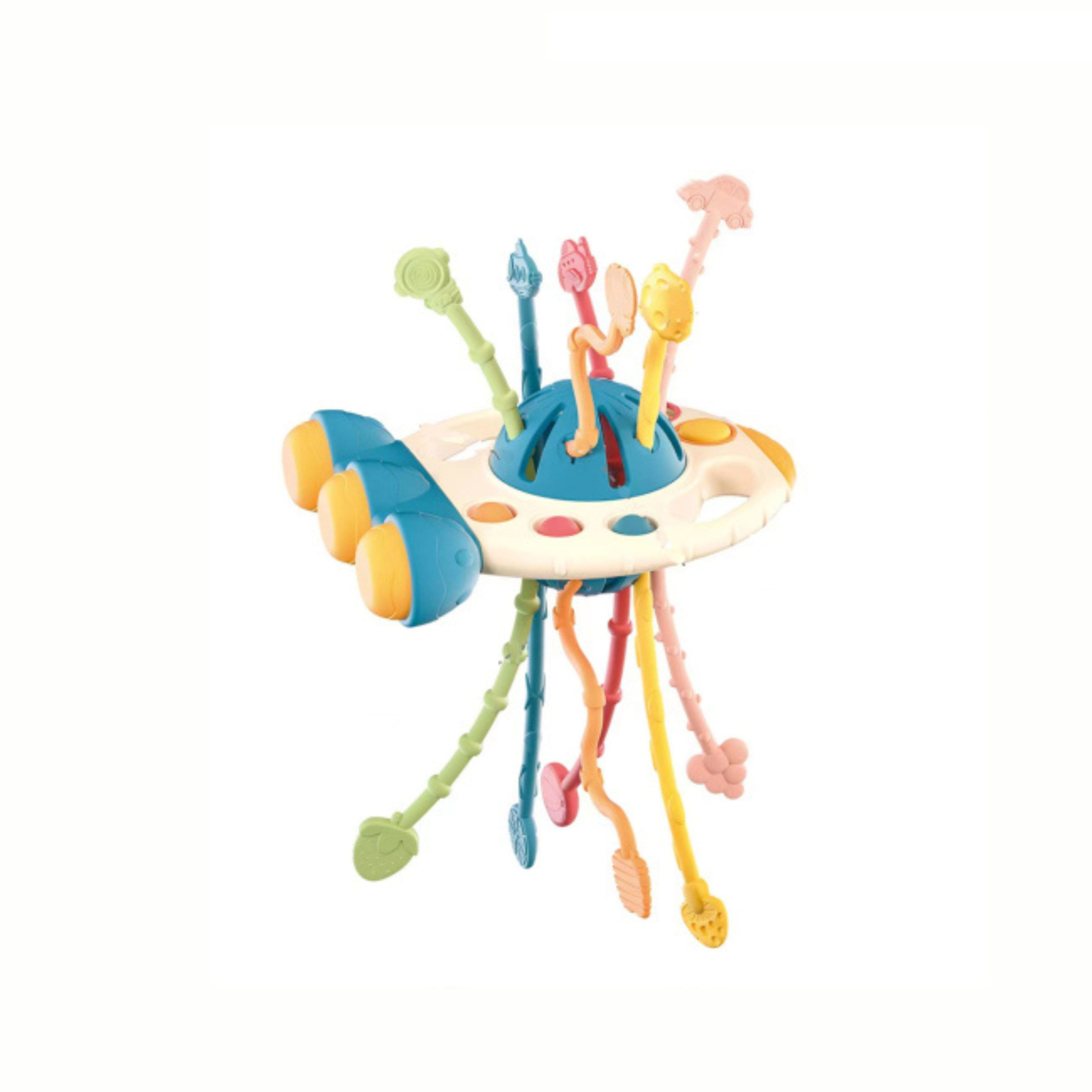 6 силиконови въженца с различни текстури, форми, вибрации– за развитие на фината моторика;
