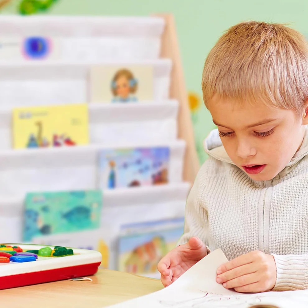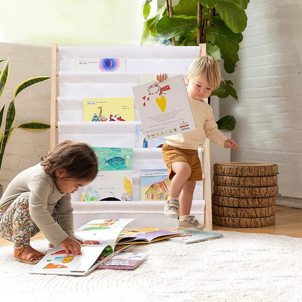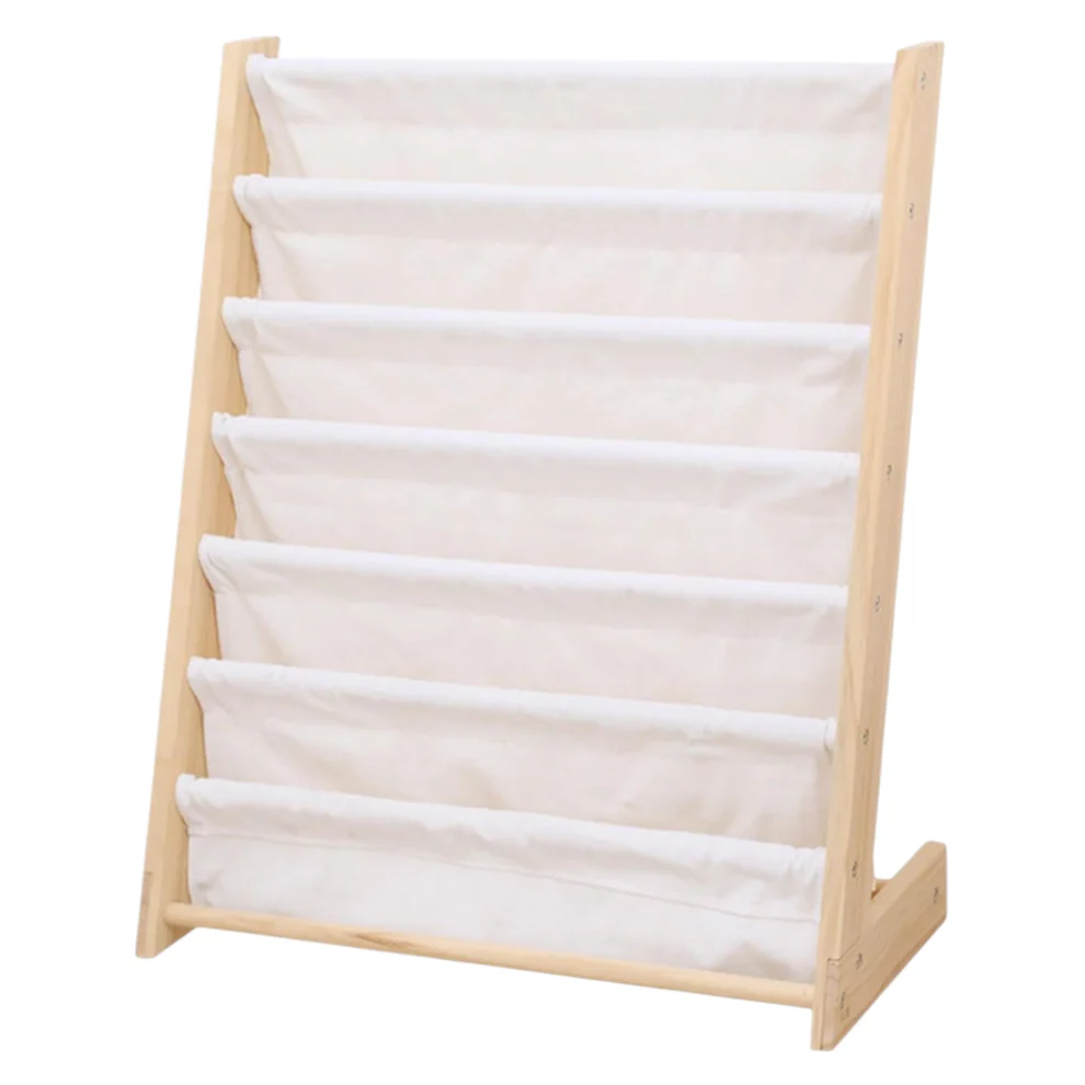6 наклонени рафта от плат – оптимални за детски книжки и списания;