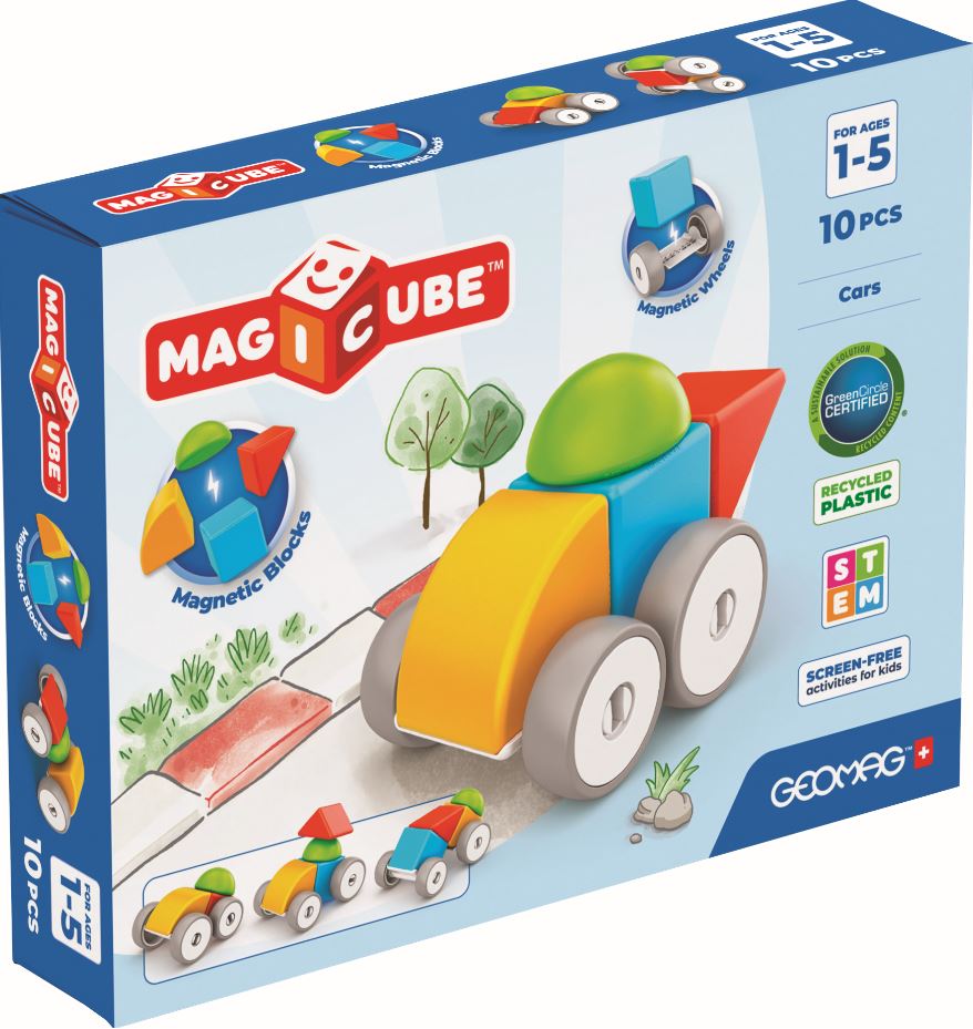 Комплектът Magicube Blocks Recycled Cars от 10 части на Geomag е идеалното въведение в творческото строителство за малки изследователи;