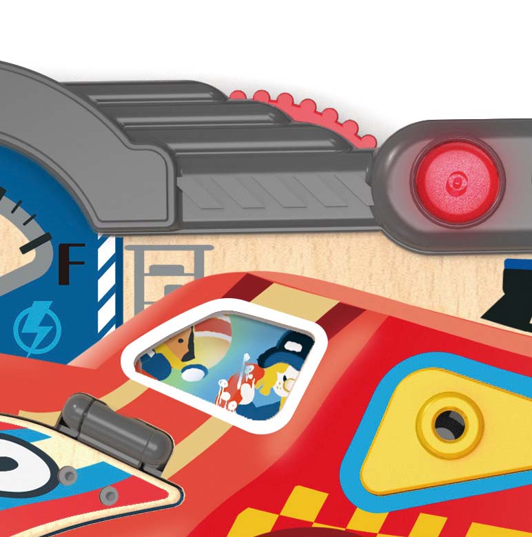 Състезателна дъска с тема ремонт на автомобили предоставя на децата завладяващо състезателно изживяване, като комбинира различни интерактивни функции в оживена състезателна сцена, която вдъхновява творческа игра;