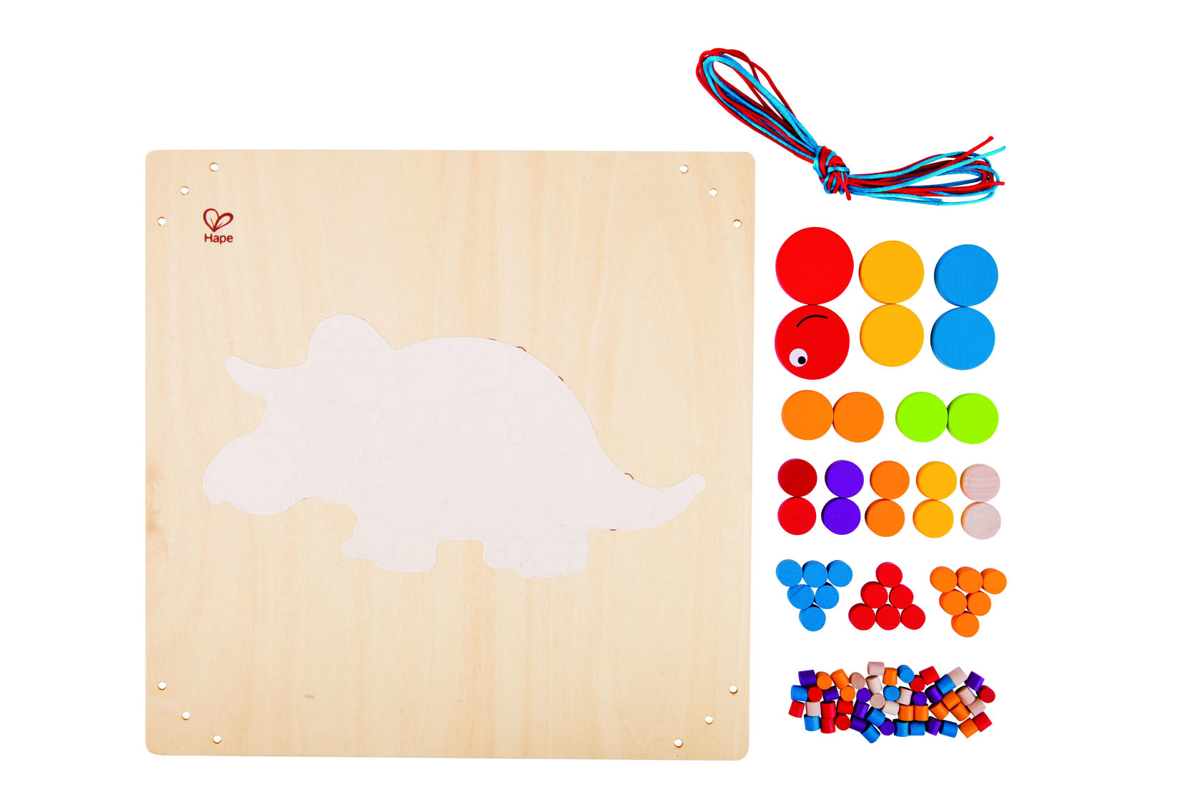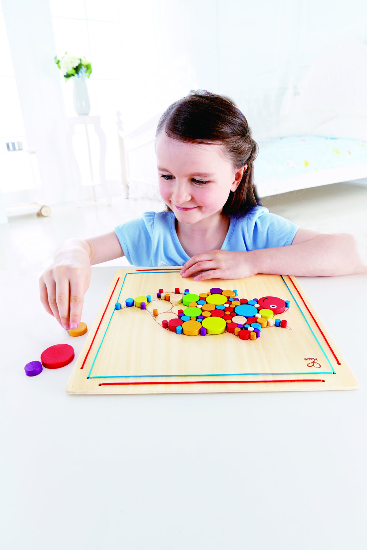 Мозайка с дървени елементи, която се подрежда върху шаблон;