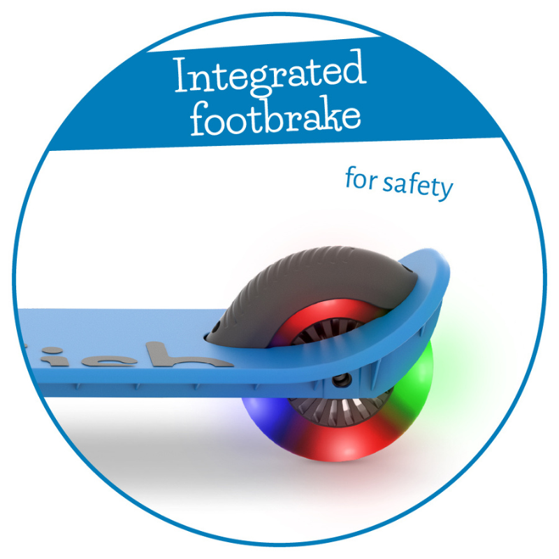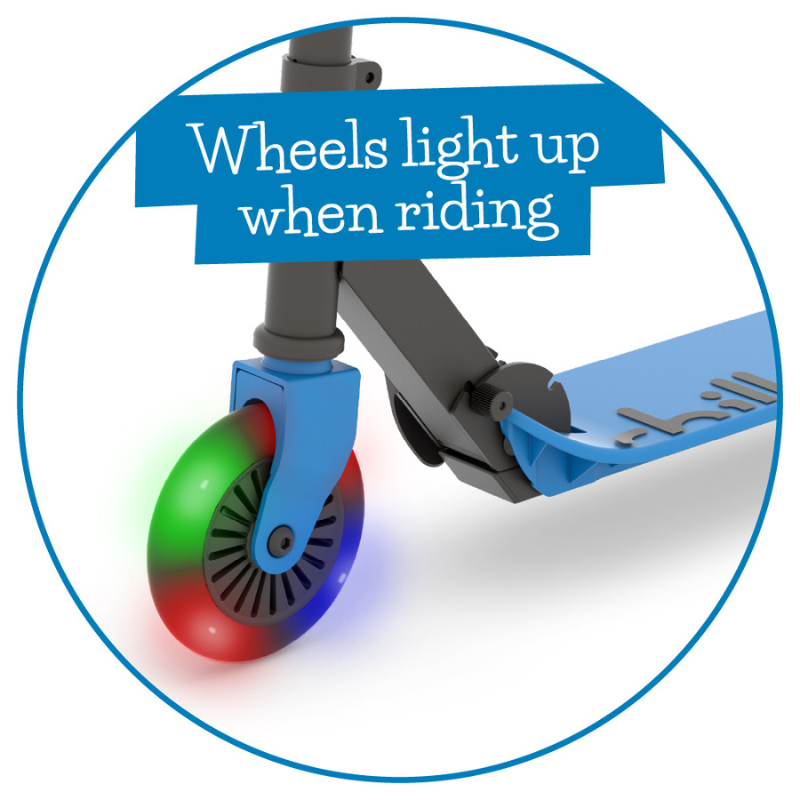 • LED светлините не се нуждаят от батерии, те се захранват просто от карането на тротинетката;