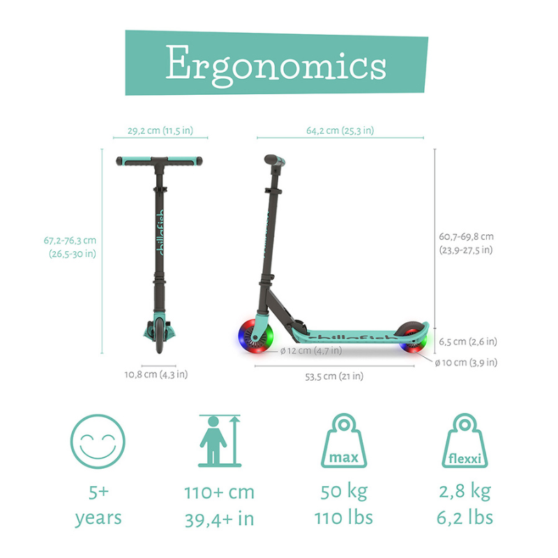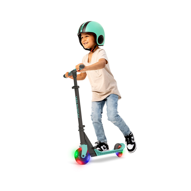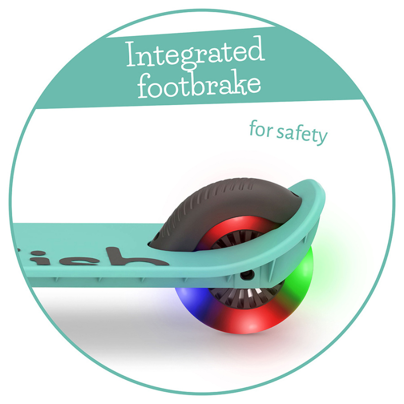 • LED светлините не се нуждаят от батерии, те се захранват просто от карането на тротинетката;