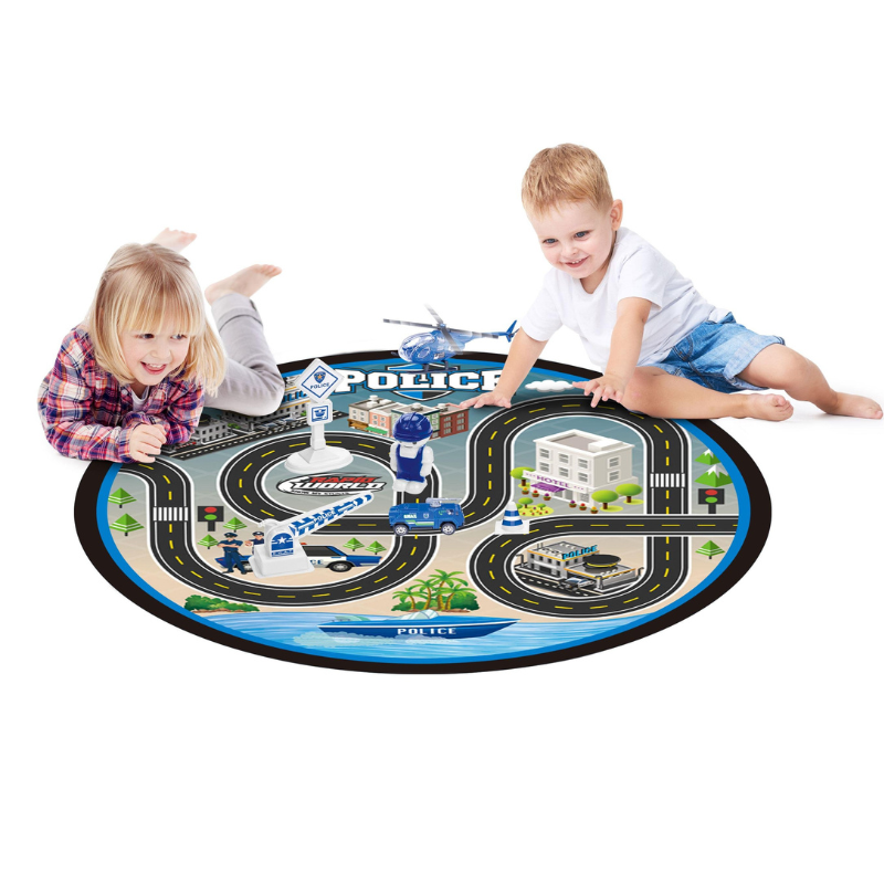 Комплектът се предлага с мека и удобна подложка с впечатляващ полицейски дизайн, която ще потопи децата в атмосферата на полицейски приключения;