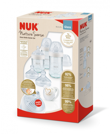 Nature SenseШише стъклeно 240мл със силиконов биберон за хранене 0+ М 2бр.;