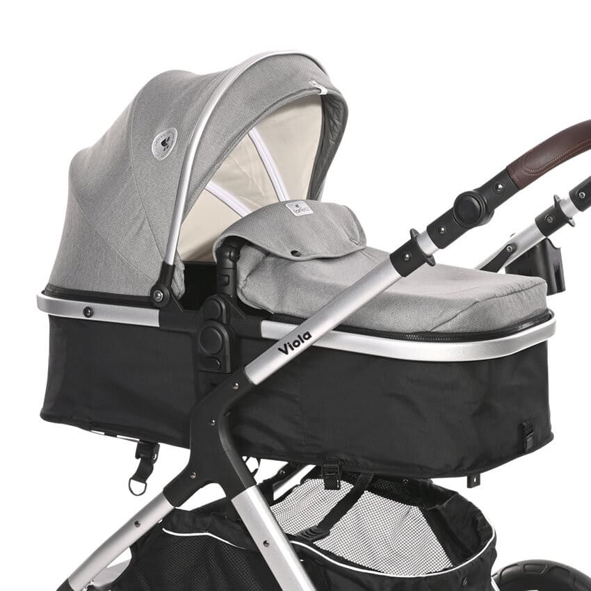 Съвместима със столче за кола Aria Luxe, което се монтира към шасито с помощта на адаптори (столчето и адапторите се предлагат отделно);