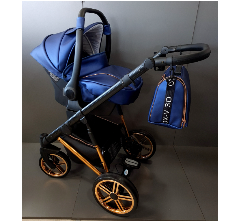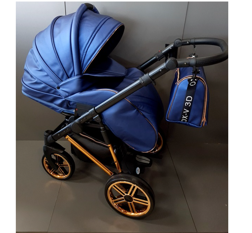 Бебешка количка 3в1 Adbor Avenue 3D eco, синя кожа/черен