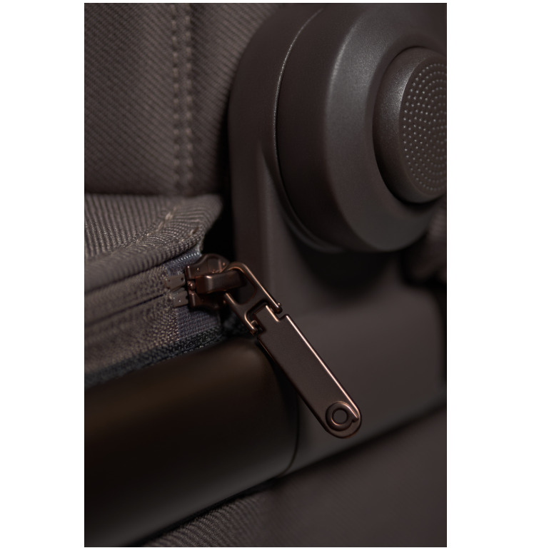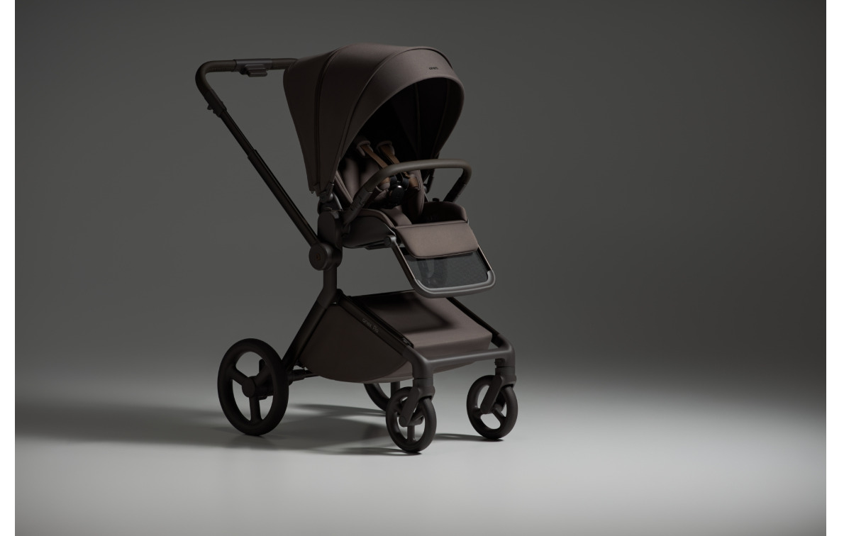 • Разполага със сложна система за проветрение, която осигурява вентилация на всички необходими места — от сенника и предната част на коша до поставката за крака и сенника на седалката;