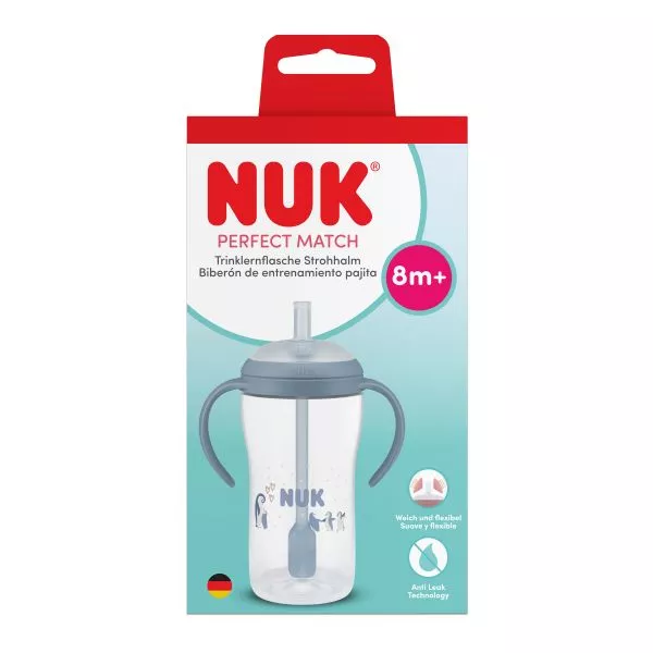 Шише със сламка Nuk Perfect Match, 260 мл., 8+мес, Пингвин