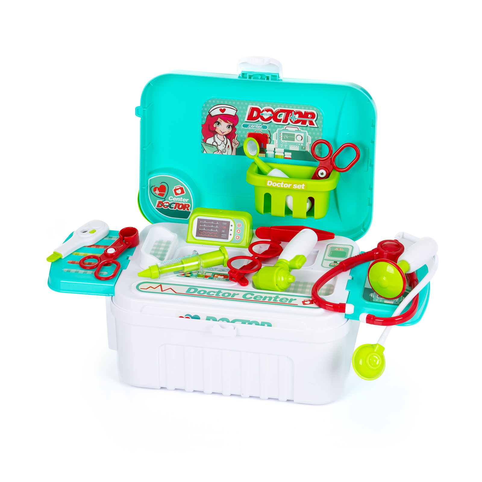 Мултифункционален комплект с различни части – куфарче, масичка с медицински инструменти, очила, слушалки, спринцовки и различни апарати, за да може малкото дете да “преглежда“ своите пациенти;