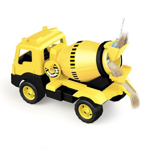 Разполага със смесител с въртящ се барабан - в него могат да се сложат вода и пясък, а децата могат да ги смесват като въртят пластмасовата приставка;
