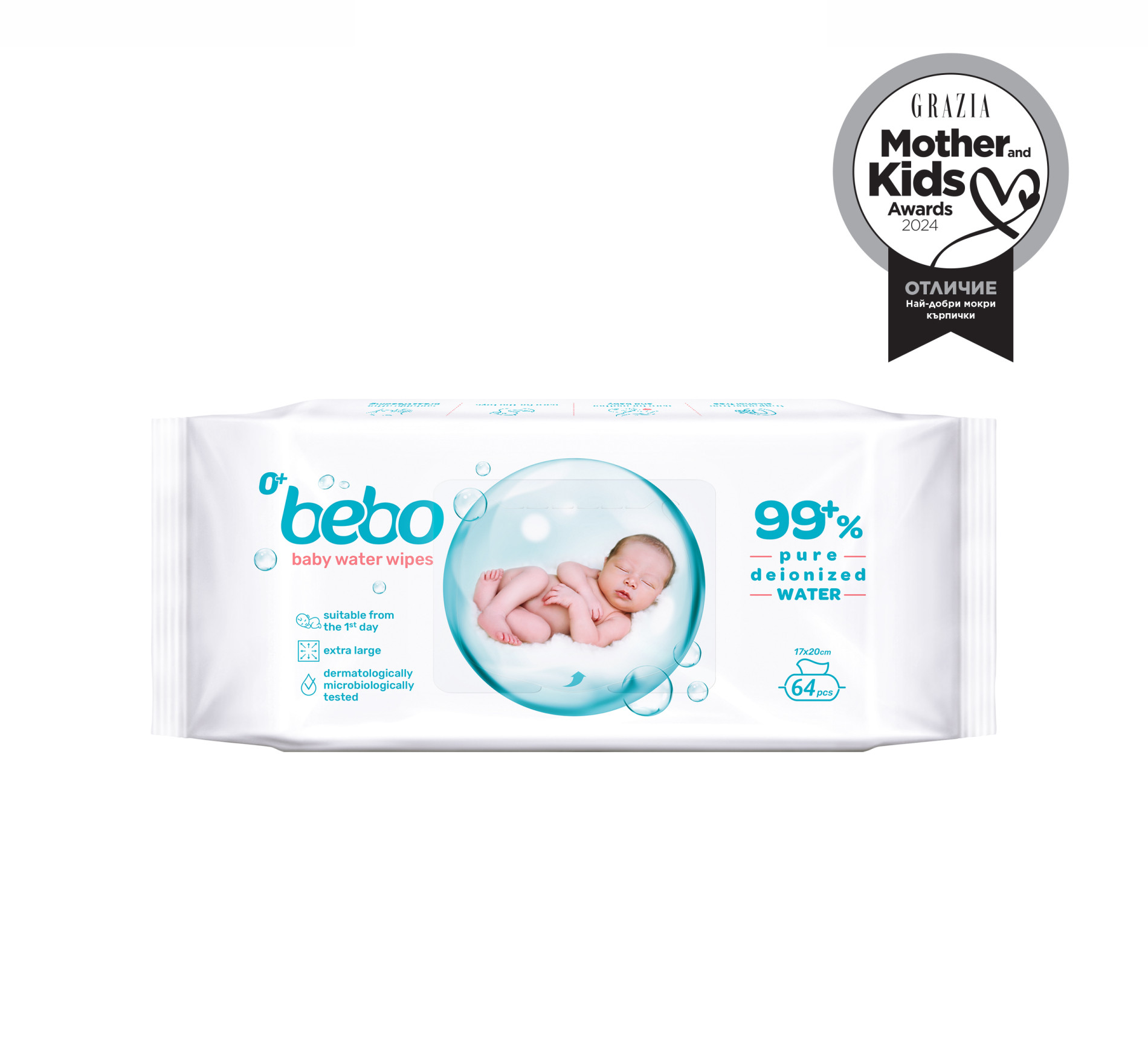 Влажни кърпички Бебо без аромат 99% вода, 64 бр.