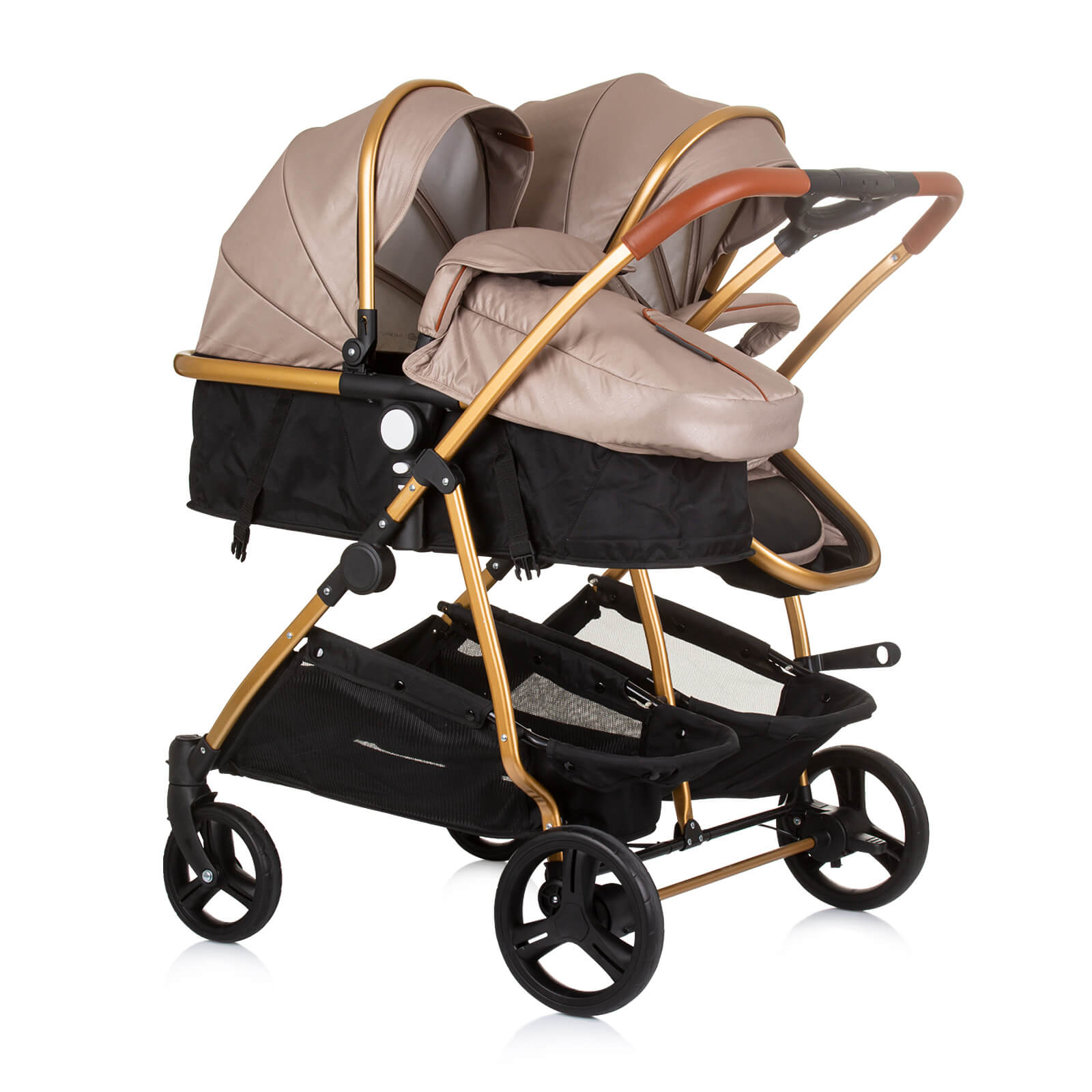 Две седалки, всяка от които се трансформира в кош за новородено;