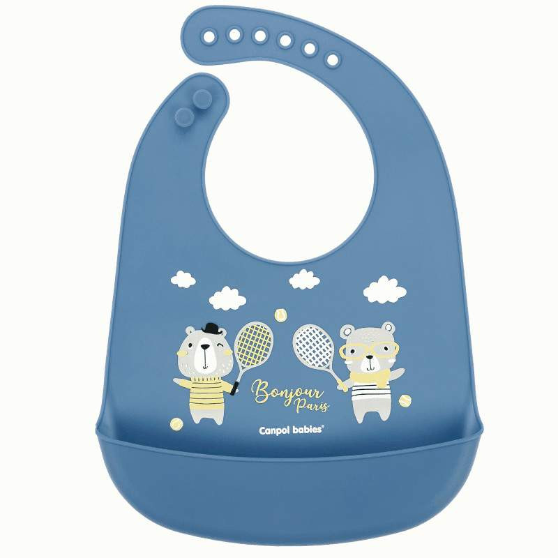 Силиконов лигавник с джоб Canpol, Bonjour Paris, син