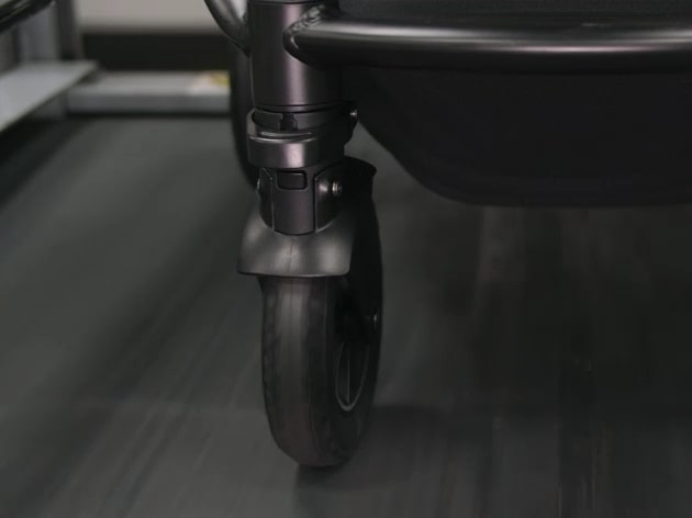 • Предните въртящи се и настрани колела се заключват с натискане на бутон, за да се плъзгат лесно по неравен терен;