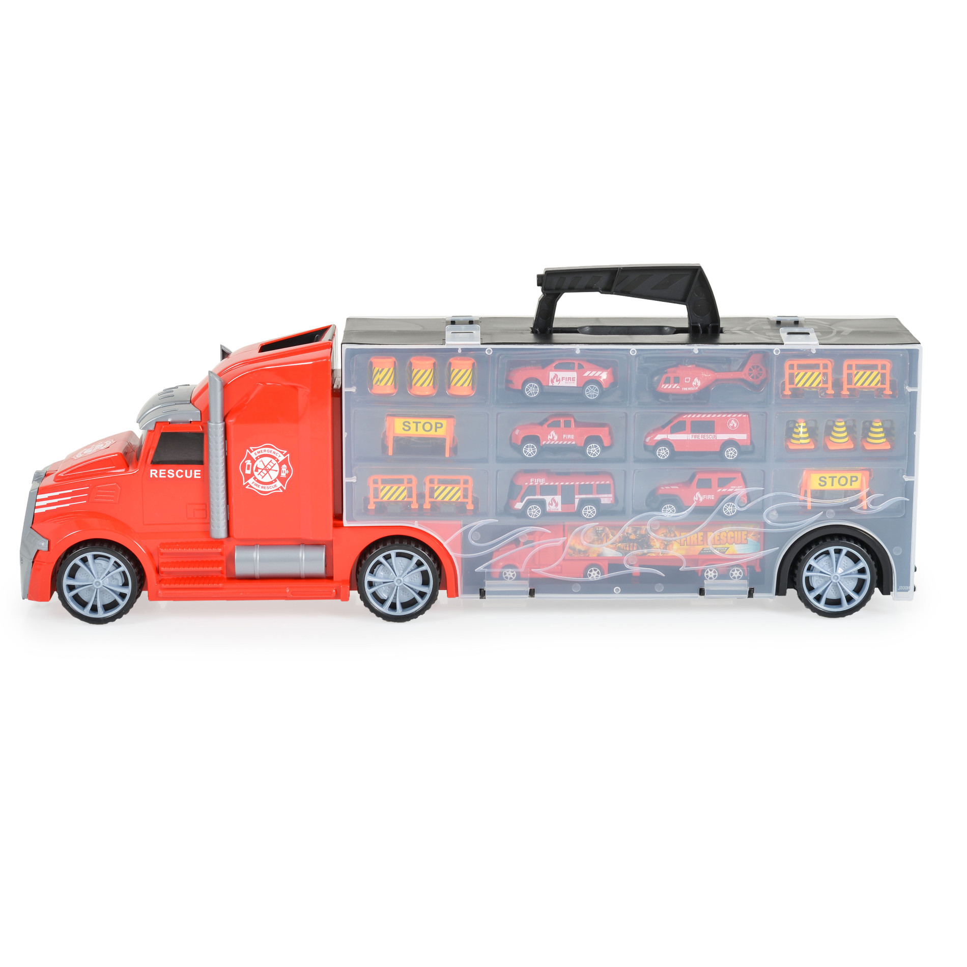 Автовозът е проектиран с различни нива за съхранение – долно и горно, всяко с по три отделения и защитни пластмасови капаци, за да се осигури безопасност на всички малки коли като има място за съхранение на допълнителни играчким