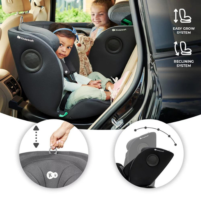 Монтира се лесно с помощта на ISOFIX и опорен крак и повишава стабилността му в автомобила