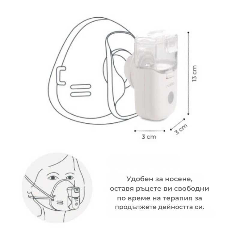 Благодарение на усъвършенстваната технология MESH, новият преносим инхалатор на Nuvita предлага възможност за провеждане на ефективни терапии бързо и безшумно;