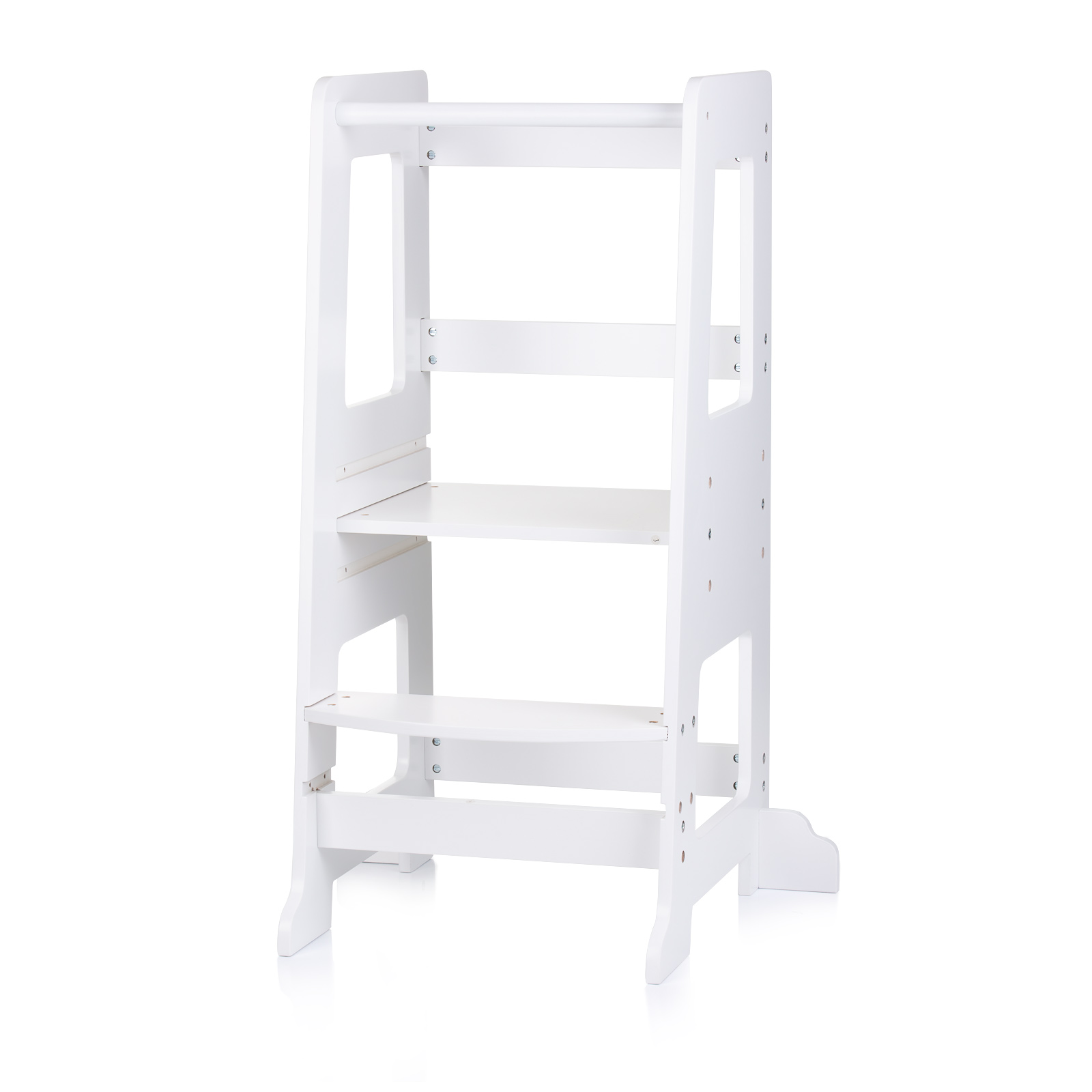 Може да се използва като столче за кухня с предпазна преграда, като стълбичка със стъпала, образователна кула – столче, катo помощник в кухнята и други;