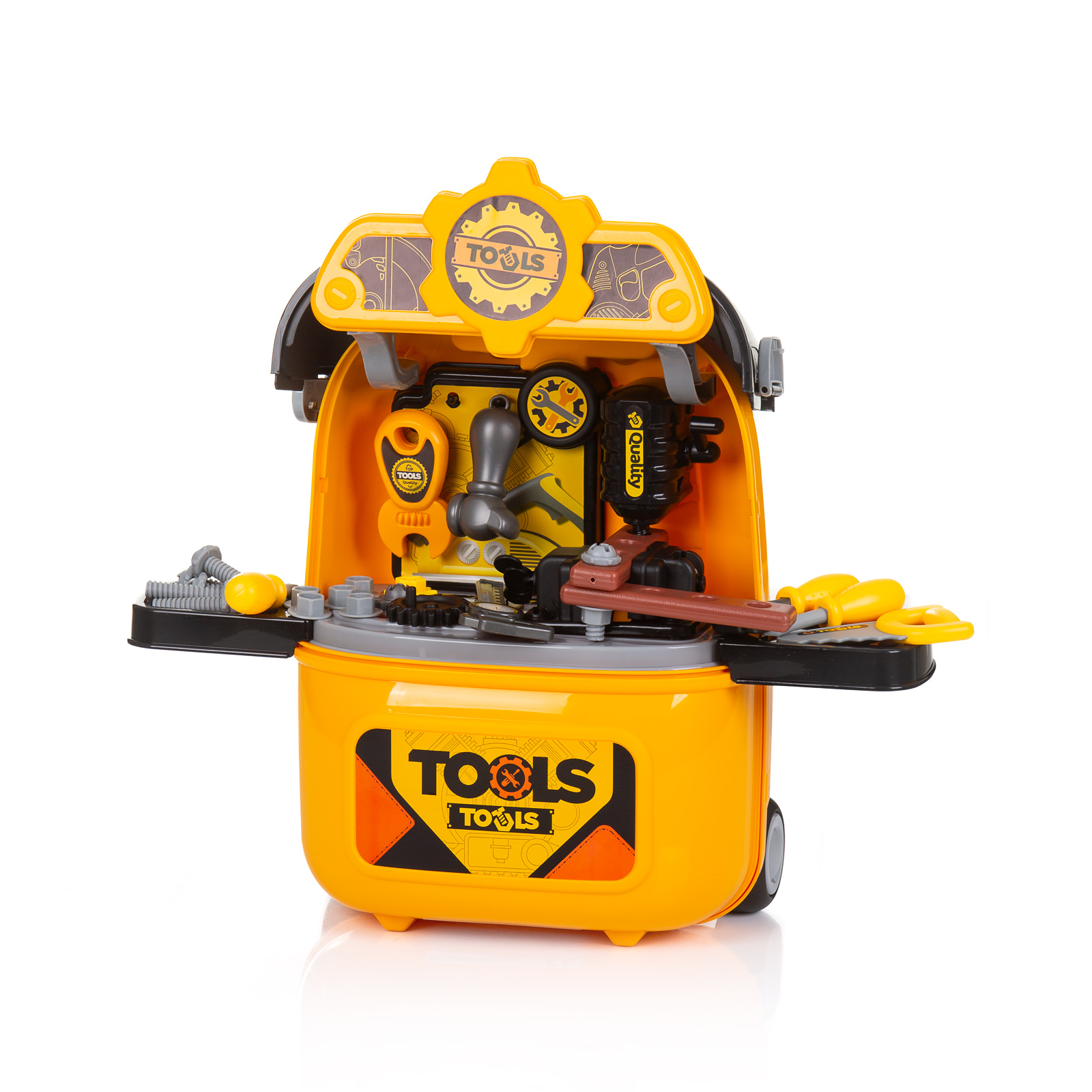 Играчката се трансформира в удобно и лесно за дърпане от детето куфарче с дръжка и отваряеми страници;