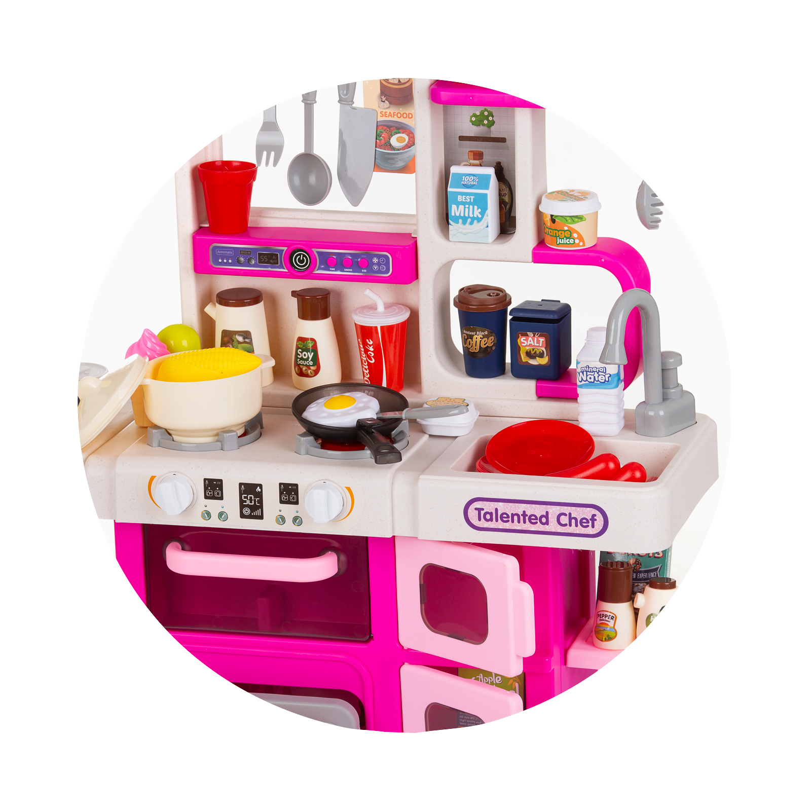 Мултифункционален и забавен кухненски комплект с различни аксесоари и реалистични ефекти, благодарение на които малките деца ще се забавляват часове наред и ще се почувстват като най-талантливите готвачи;