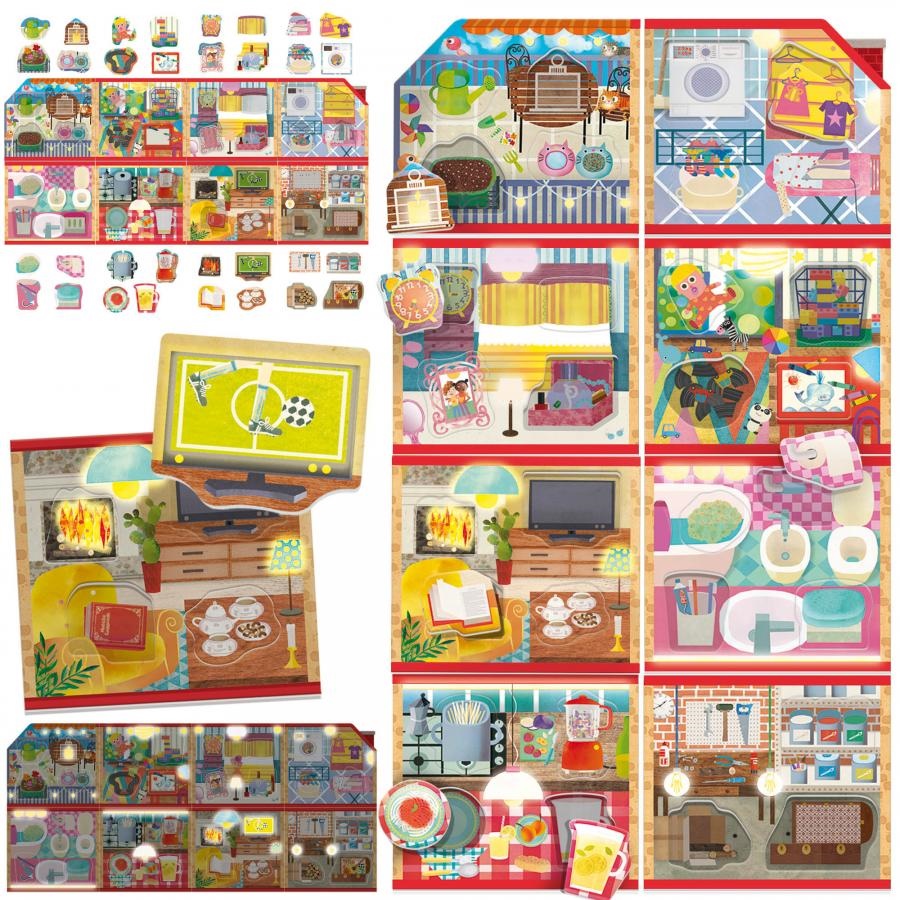 Поставете предметите на правилните места, сглобете отново и отново малката къща;