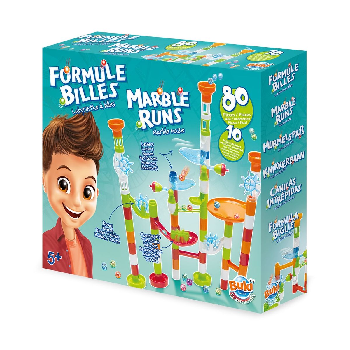 Брой части: 80 броя, включително 10 мраморни топчета;