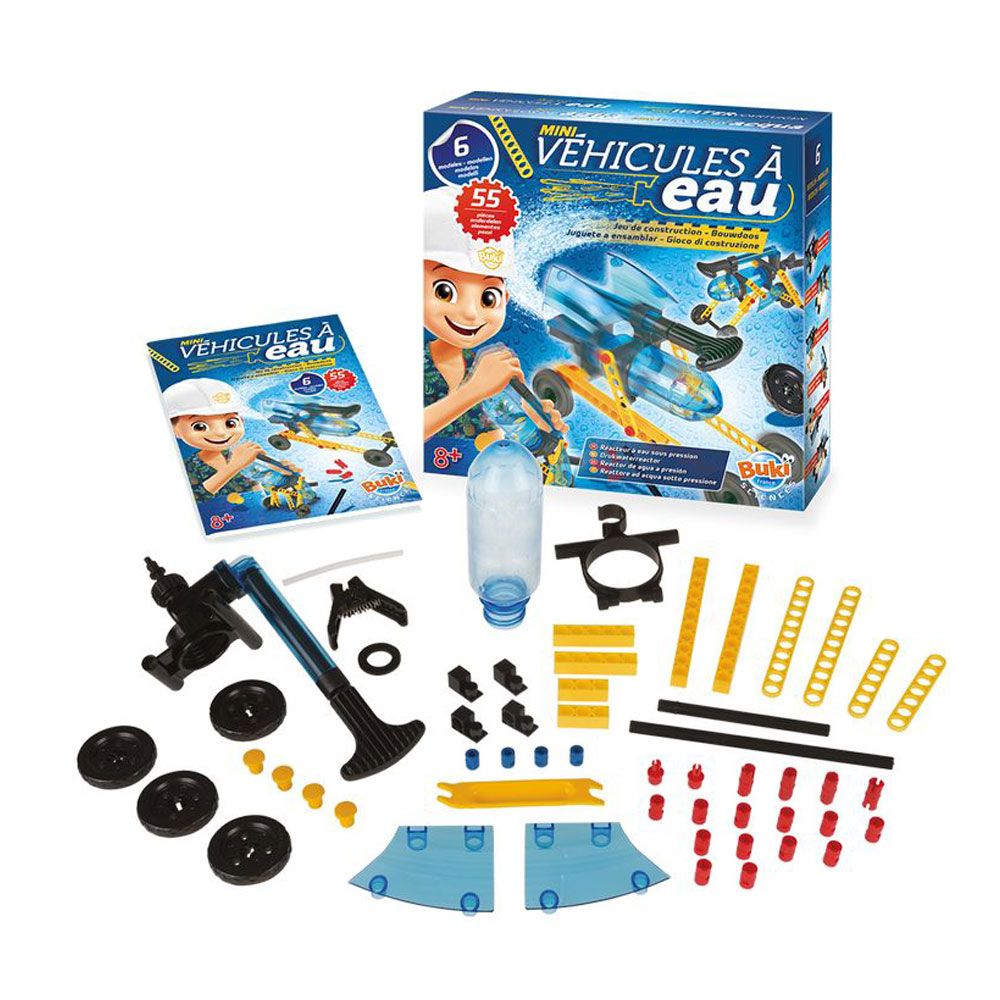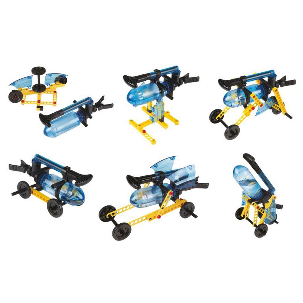С комплекта може да направите 6 модела, включително воден пистолет и състезателна кола;
