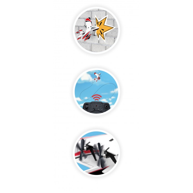 Включени: 1 самолет, 1 радио управление, 2 мотора, резервни витла, 1 USB кабел и 1 лист с инструкции;