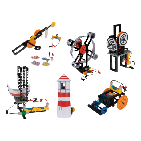 • С чудесния комплект детето ще може да сглоби 17 различни модела, които ще се задвижват с електричество;