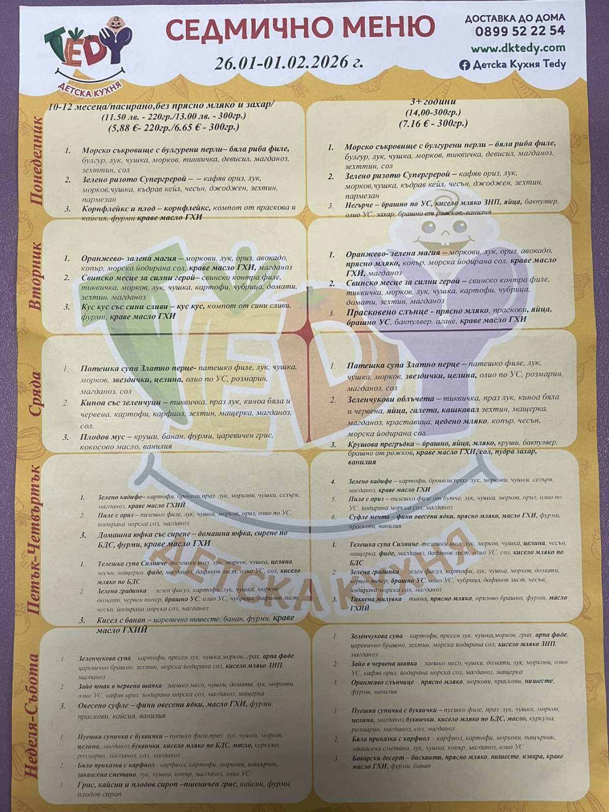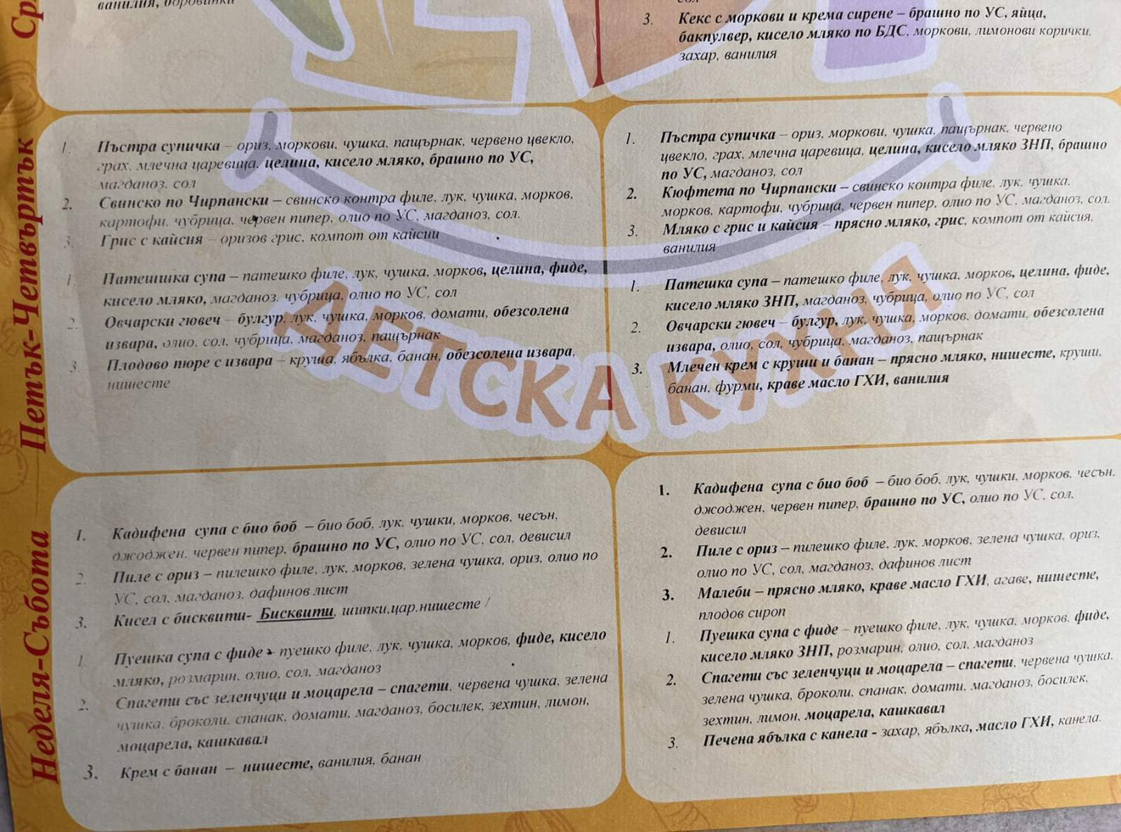 Менютата са съобразени изцяло с хранителния режим на децата Ви и техните калорийни нужди