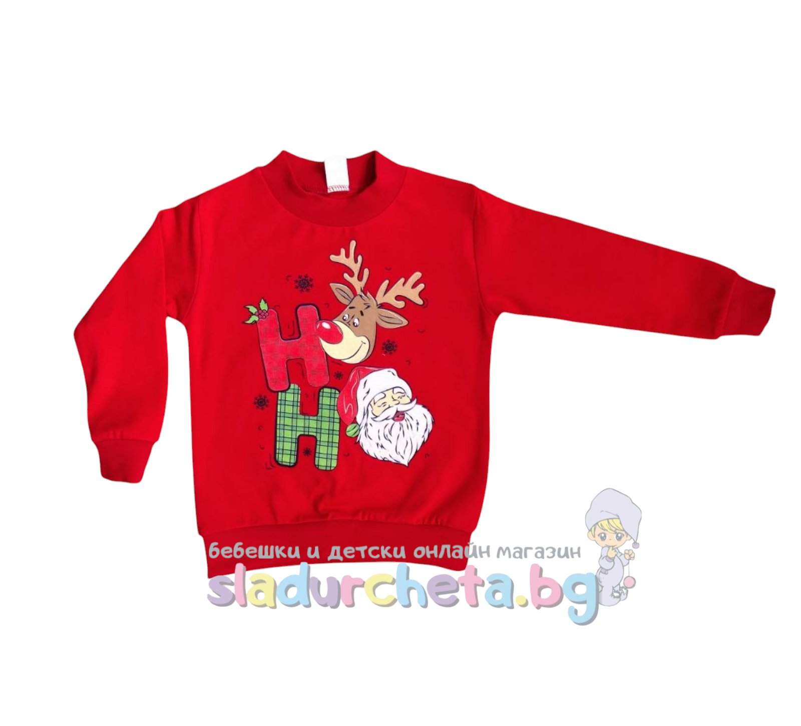 • Блузата е с дълъг ръкав в червен цвят с коледен десен;