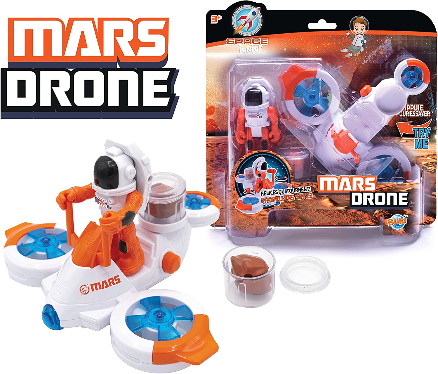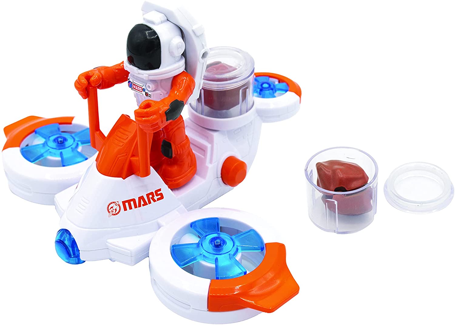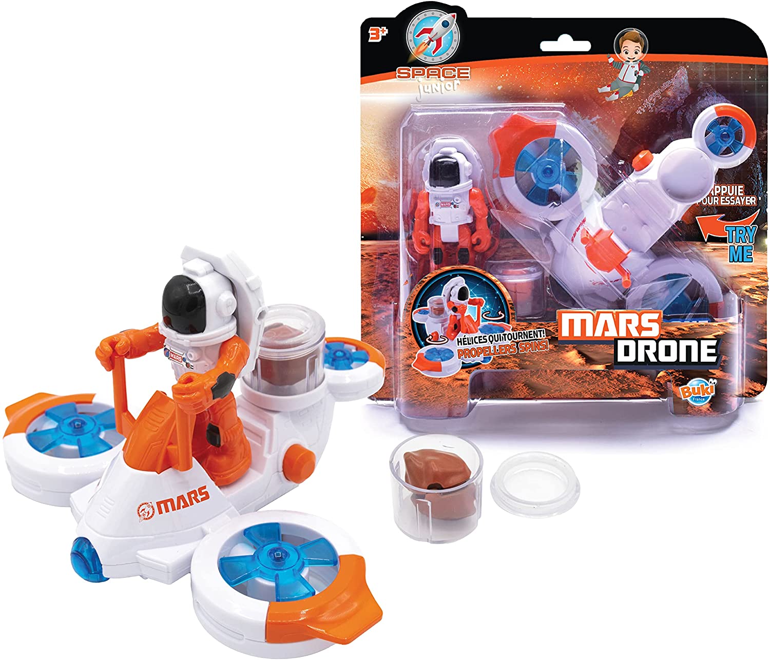 Комплектът включва: 3 инчов астронавт, дрон и пособие за събиране на каменна проба;