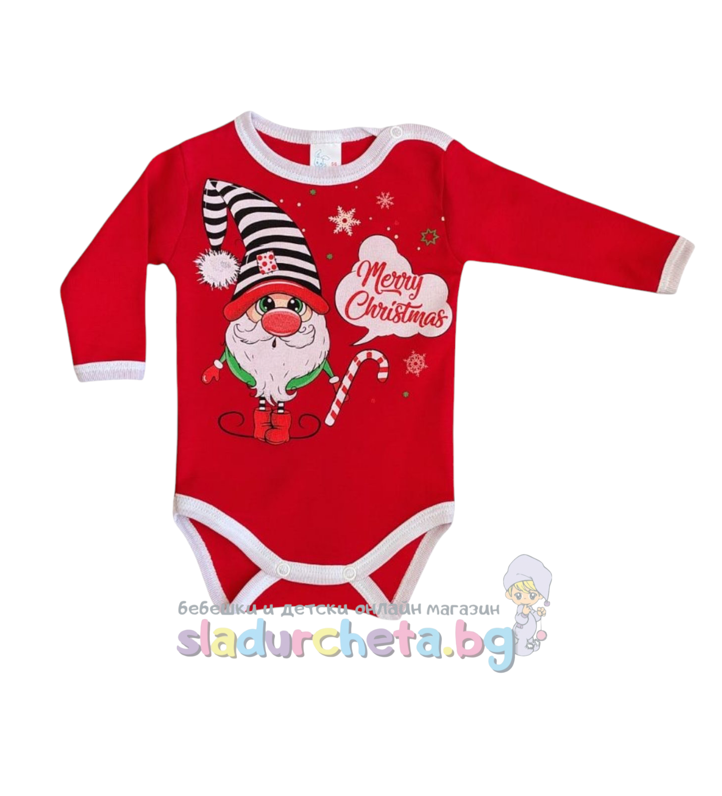 • Бодито е с дълъг ръкав в червен цвят с коледна апликация;