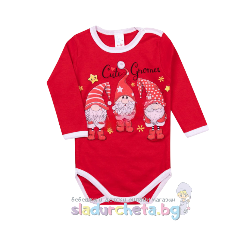 Бодито е с дълъг ръкав в червен цвят с коледна апликация;