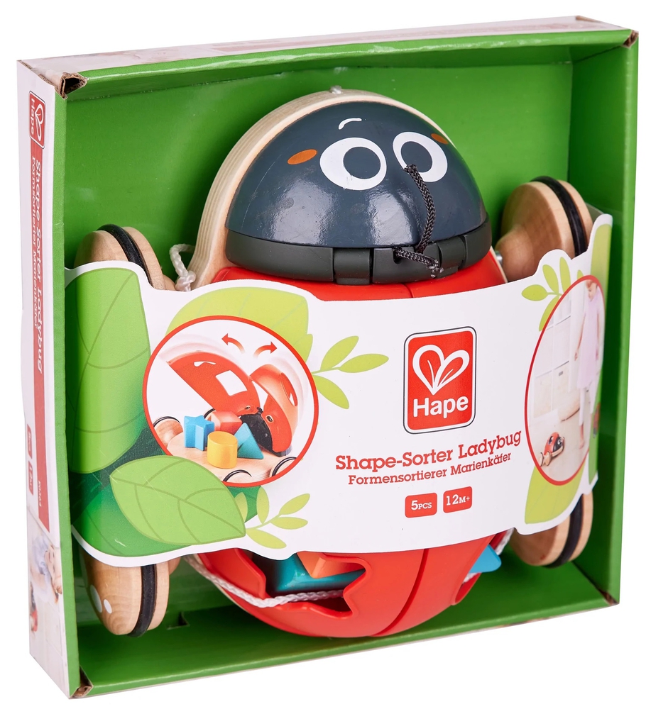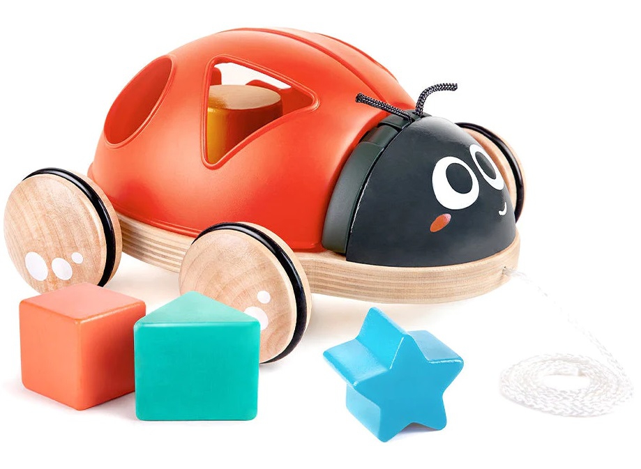 Играчката се доставя с четири различни по форма кубчета, които да се поберат в дупките на крилото на Калинката;