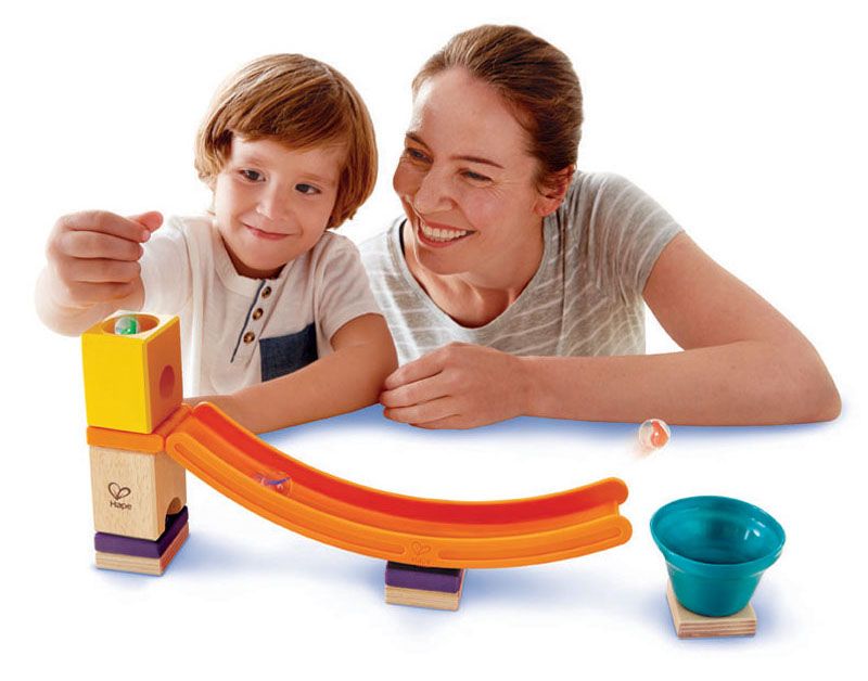 Модулната система на дървена писта с топчета насърчава малки и големи да изграждат фантастични конструкции с много страхотни функции;