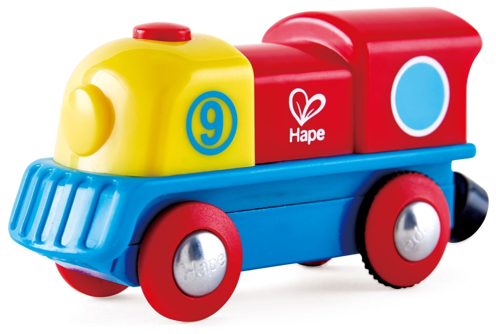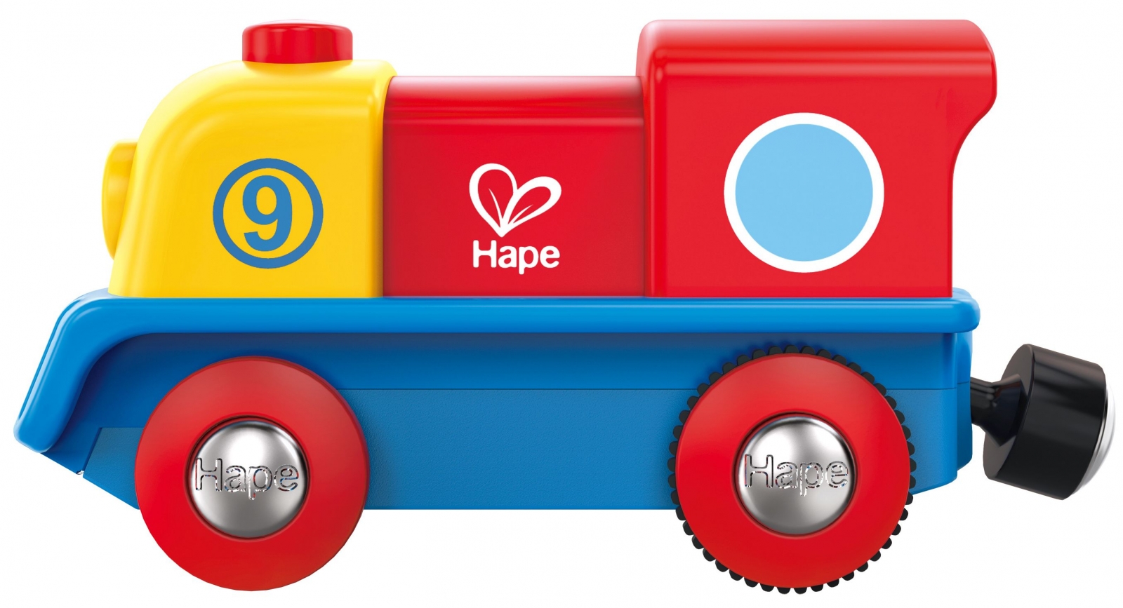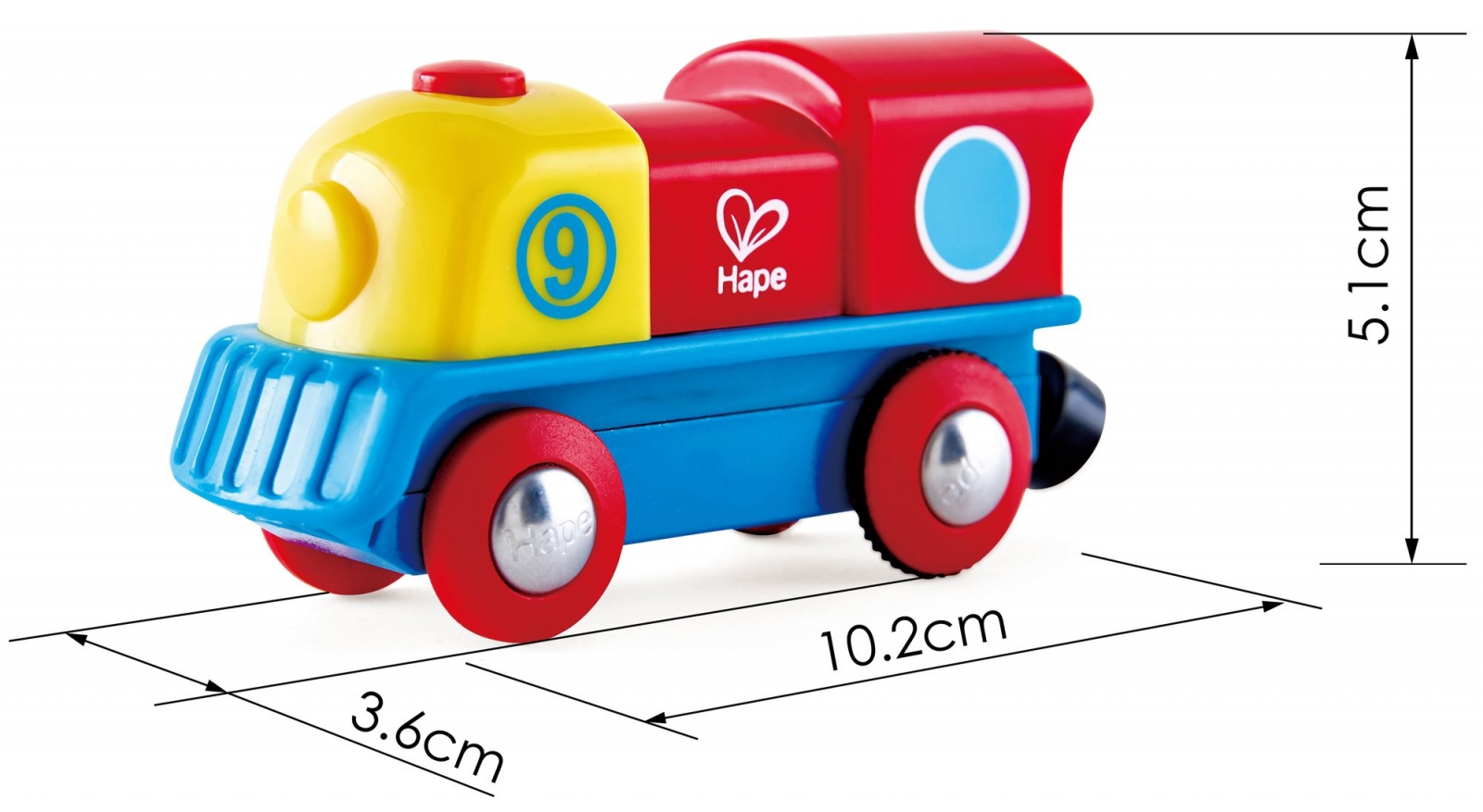 Влакчето е чудесно допълнение към релсите и влаковете на Hape;