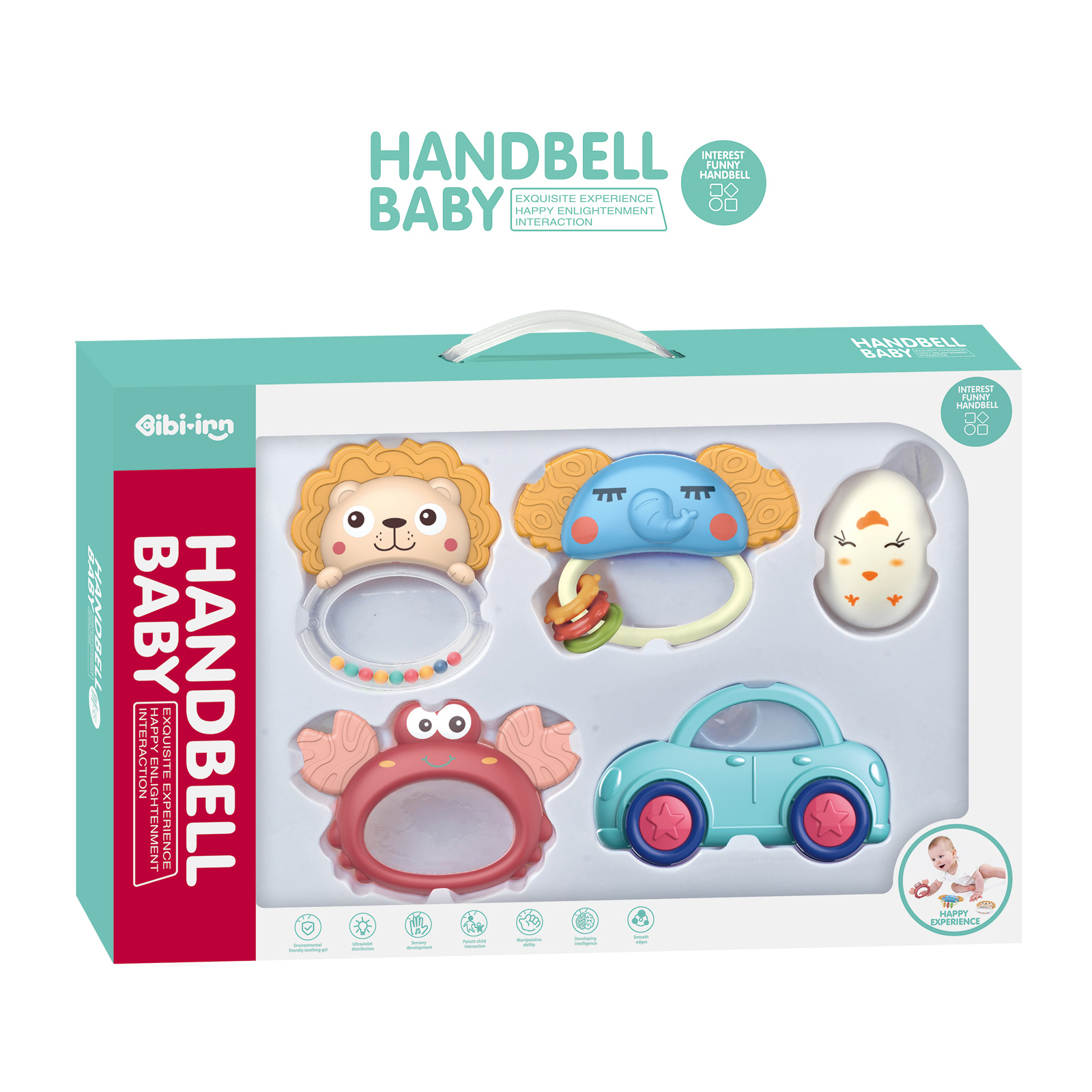 Цветен дизайн, в забавна форма на животинки – стимулират визуалното и моторното развитие;
