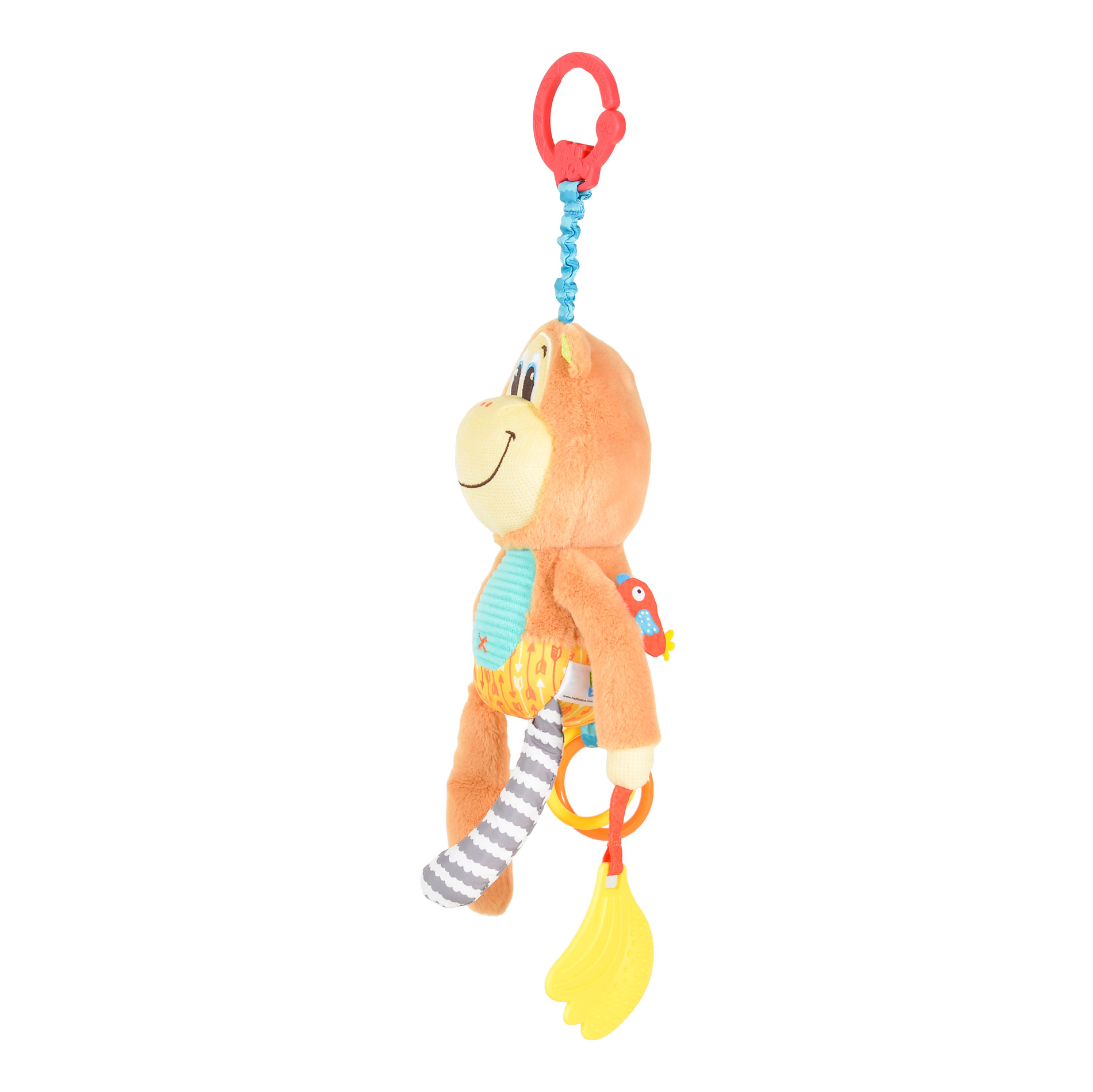 Снабдена с практична висулка, която Ви позволява да прикрепите маймунката навсякъде, за да може да придружава бебето навсякъде;