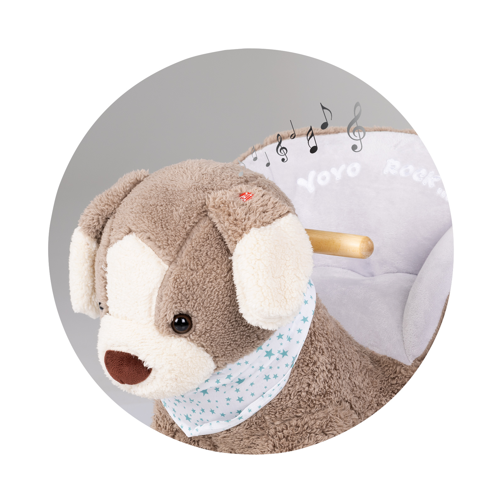 • С допълнителна функция за почивка - младият ездач може да си почине в стола или да се държи за удобната симпатична глава на кученцето;