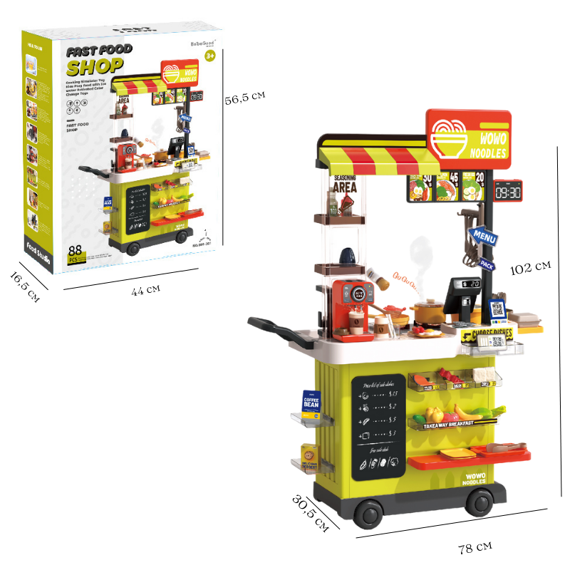 • Количката разполага с разнообразни рафтове и поставки, за да можете да направите свой собствен уникален павилион за бързо хранене;