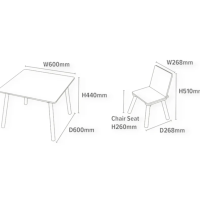 • Стол: 26.8х26.8х50 см;