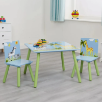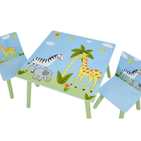 Детска маса с два стола Ginger Savanna, син и зелен с жираф зебра