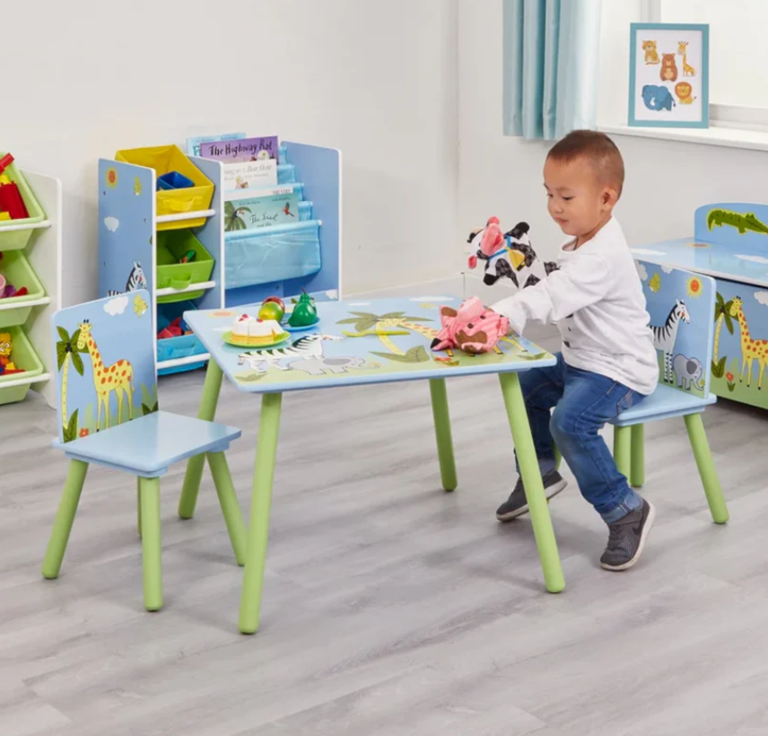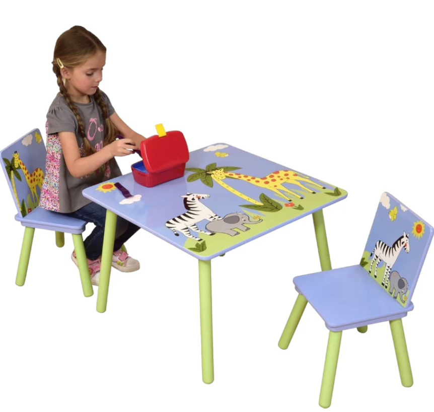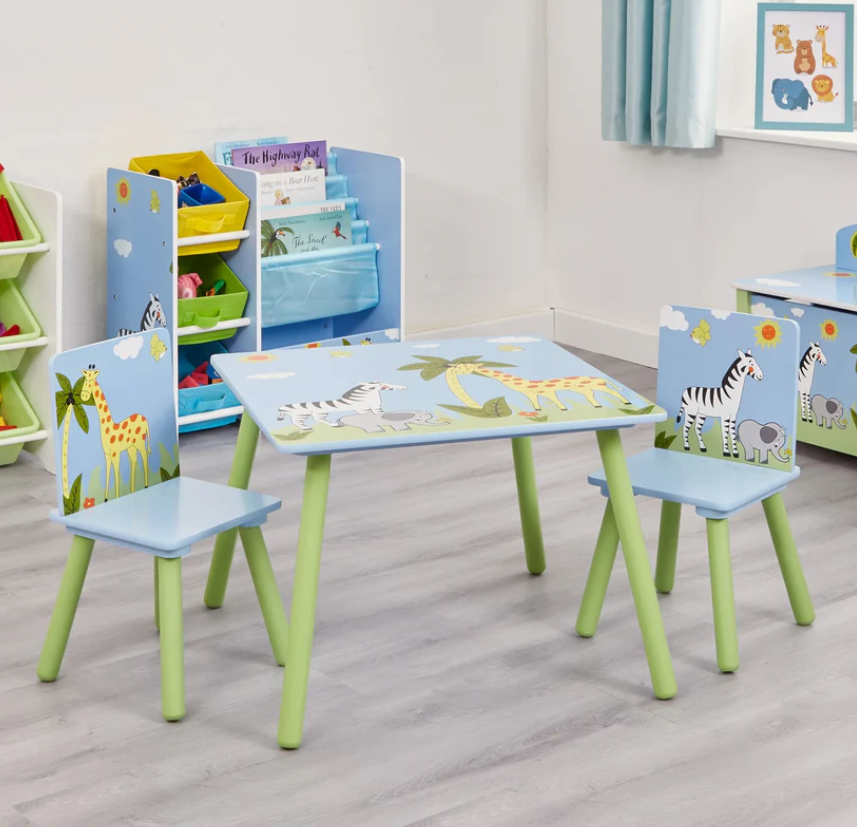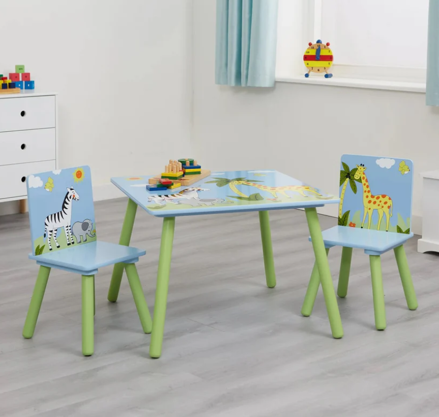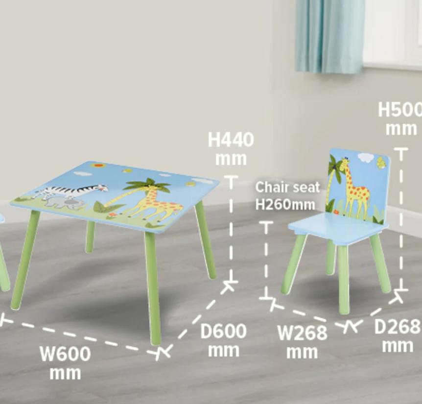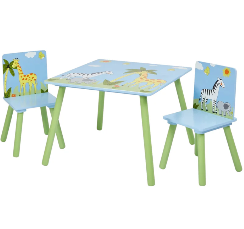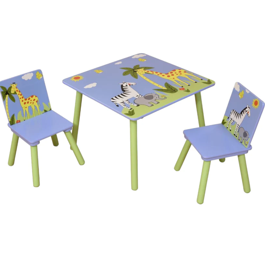 Детска маса с два стола Ginger Savanna, син и зелен с жираф зебра-tpcR9.png