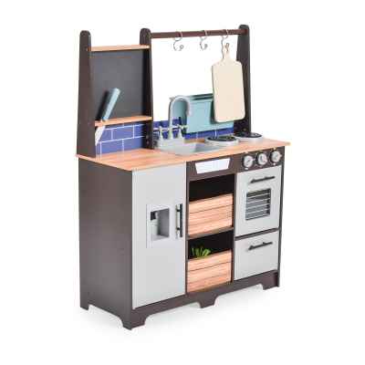 Детска дървена кухня разполага с много копчета и врати, което ще помогне на малките да развият двигателните си умения и рефлекса за хващане на различни по форма предмети;